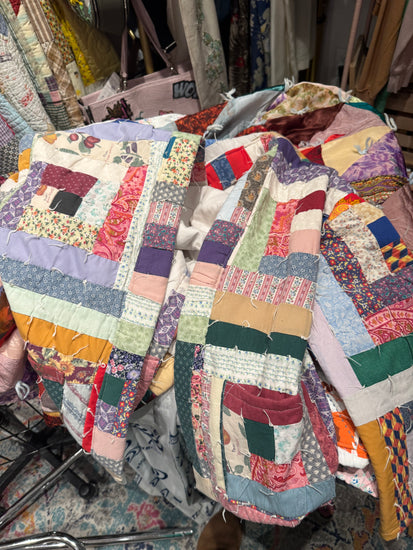 Vintage Hand Quilted Log Cabin Green Short Jacket